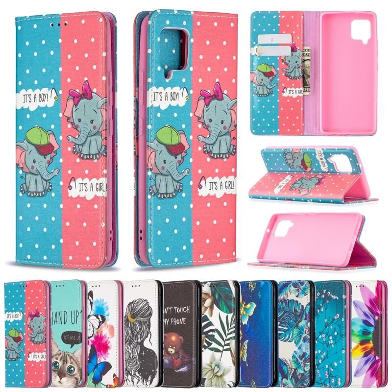 Θήκη Samsung Galaxy A42 5G με πολύχρωμο σχέδιο, αόρατο μαγνητικό, οριζόντιο flip από δερματίνη PU με βάση & θήκες για κάρτες & πορτοφόλι (Κόκκινο)
