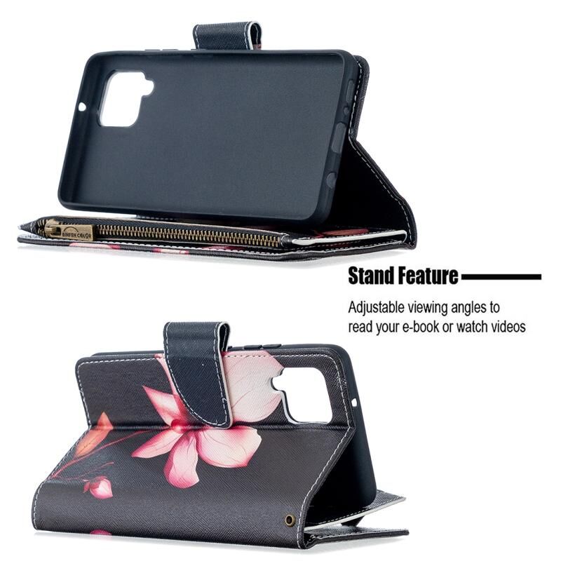 Θήκη Samsung Galaxy A42 5G με σχέδιο ζωγραφικής, χρώματα, οριζόντια αναδιπλούμενη από δέρμα με φερμουάρ, βάση στήριξης & θήκες για κάρτες & πορτοφόλι (Κόκκινο)