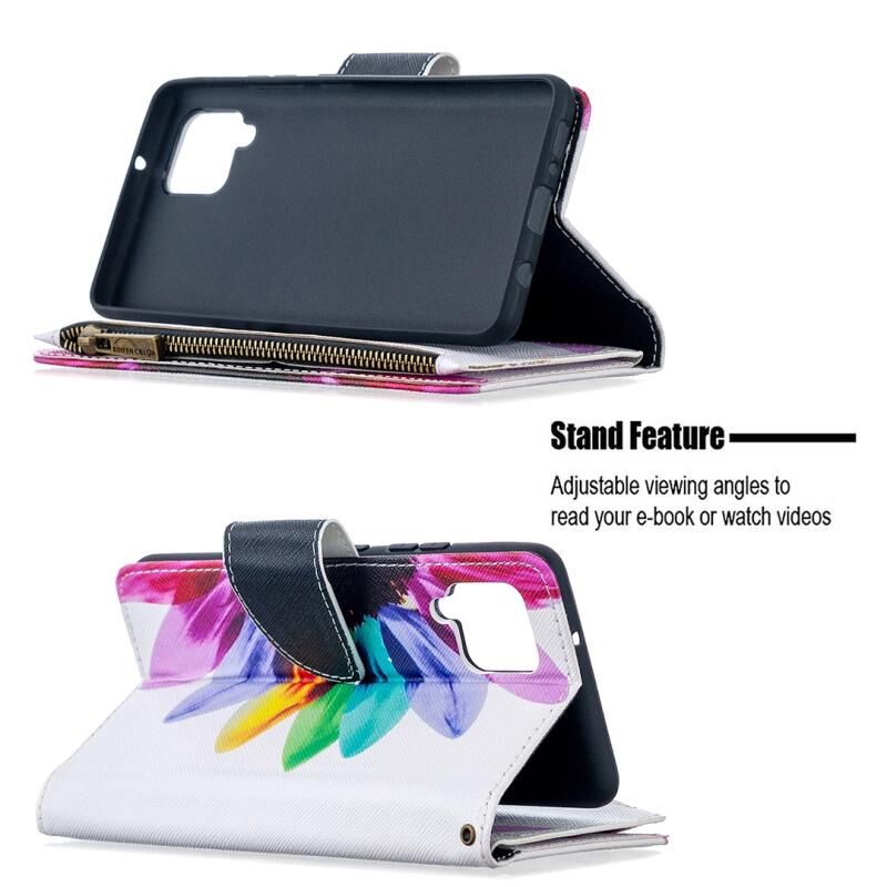 Θήκη Samsung Galaxy A42 5G με σχέδιο πολύχρωμου σχεδίου, οριζόντια δερμάτινη θήκη με φερμουάρ, με βάση & υποδοχές καρτών & πορτοφόλι (Ηλίανθος)
