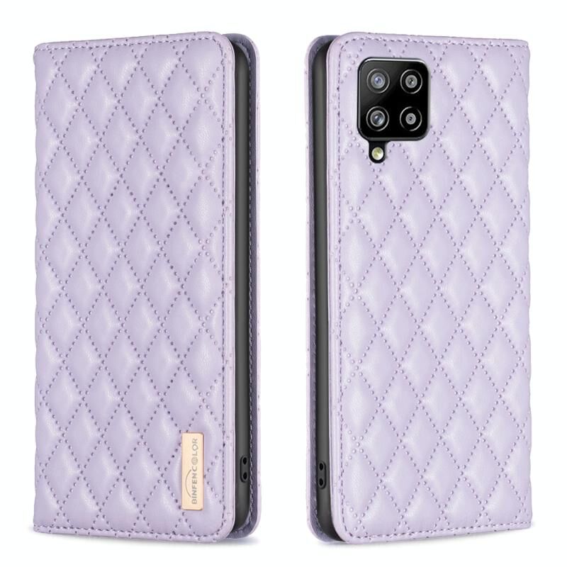 Θήκη τηλεφώνου Samsung Galaxy A42 5G, Δερμάτινη, Πτυσσόμενη, Μαγνητική, με σχέδιο διαμαντόπετρας (Μωβ)