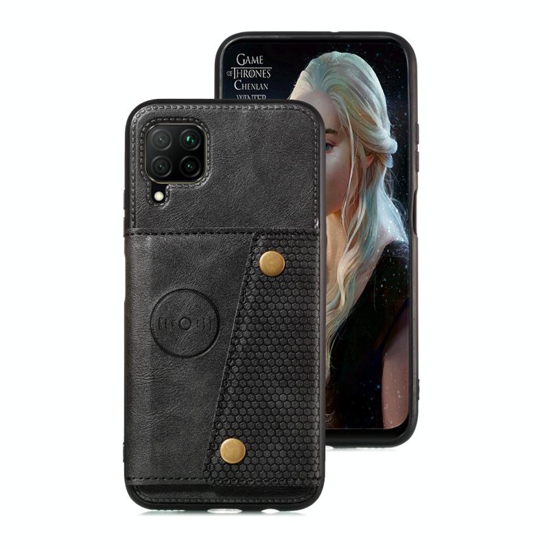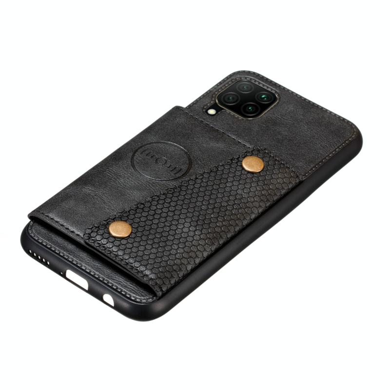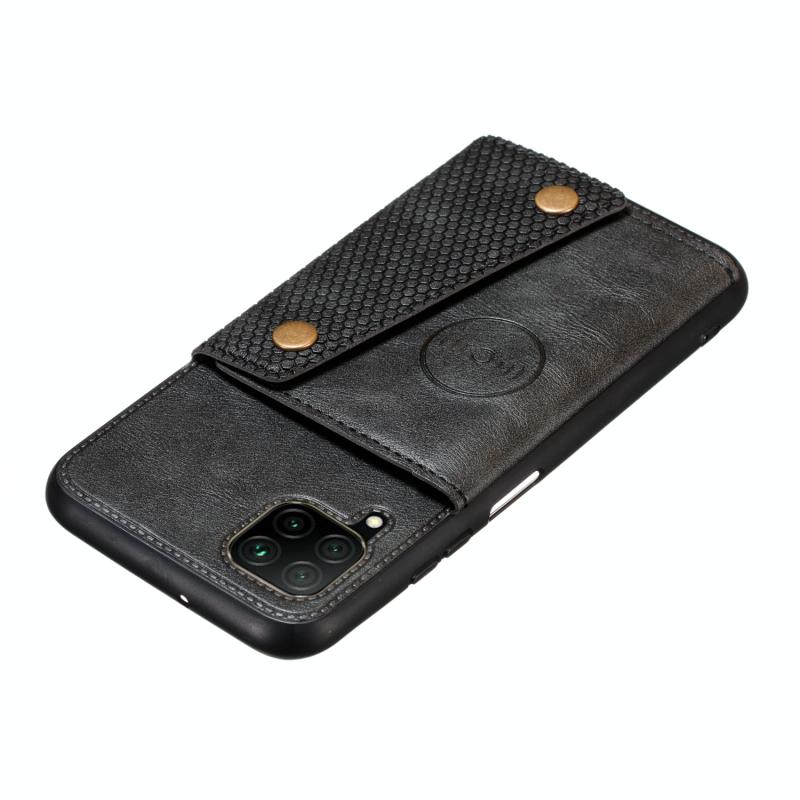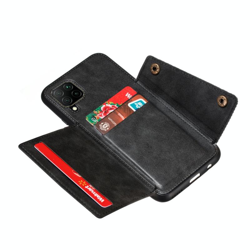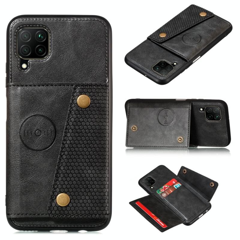 For Samsung Galaxy A42 5G Double Buckle PU + TPU Shockproof Magnetic Protective Case with Card Slot & Holder(Black)