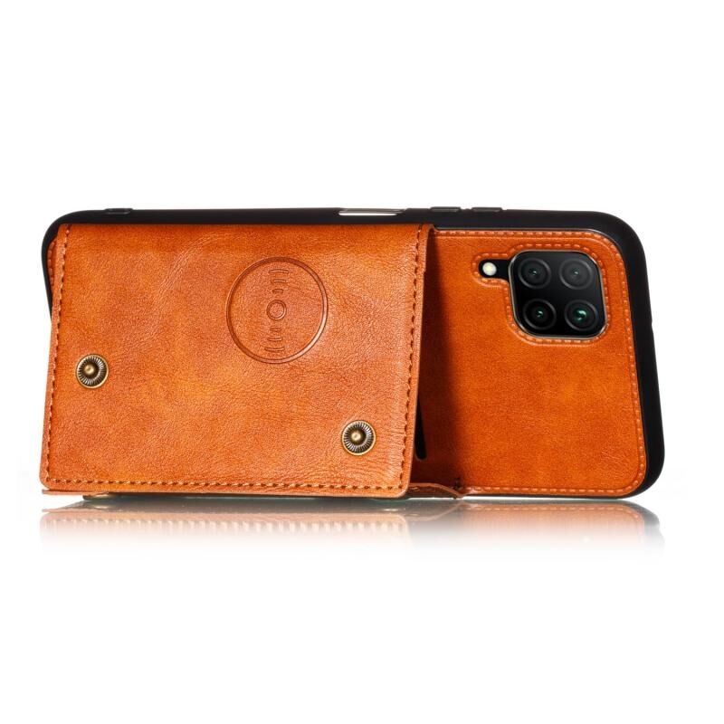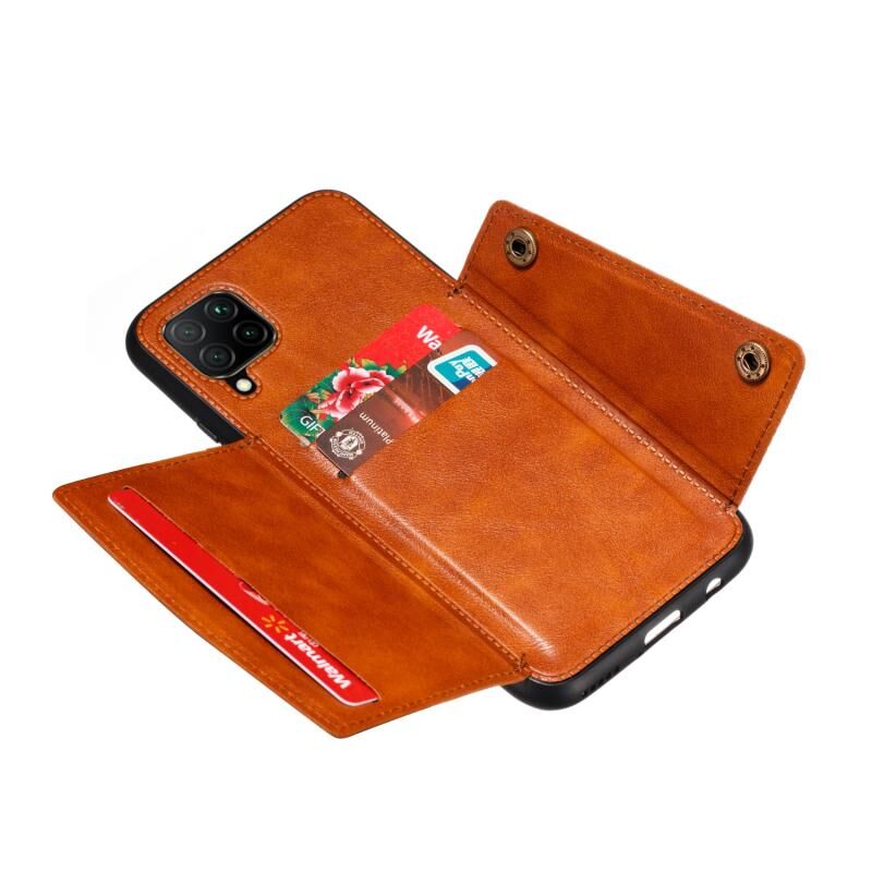 For Samsung Galaxy A42 5G Double Buckle PU + TPU Shockproof Magnetic Protective Case with Card Slot & Holder(Light Brown)