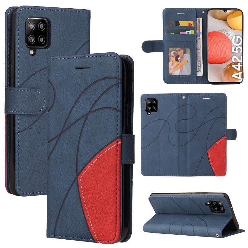 Για Samsung Galaxy A42 5G Διπλό χρώμα Splicing οριζόντια Flip PU δέρμα υπόθεση με θήκη & υποδοχές για κάρτες & πορτοφόλι (Μπλε)
