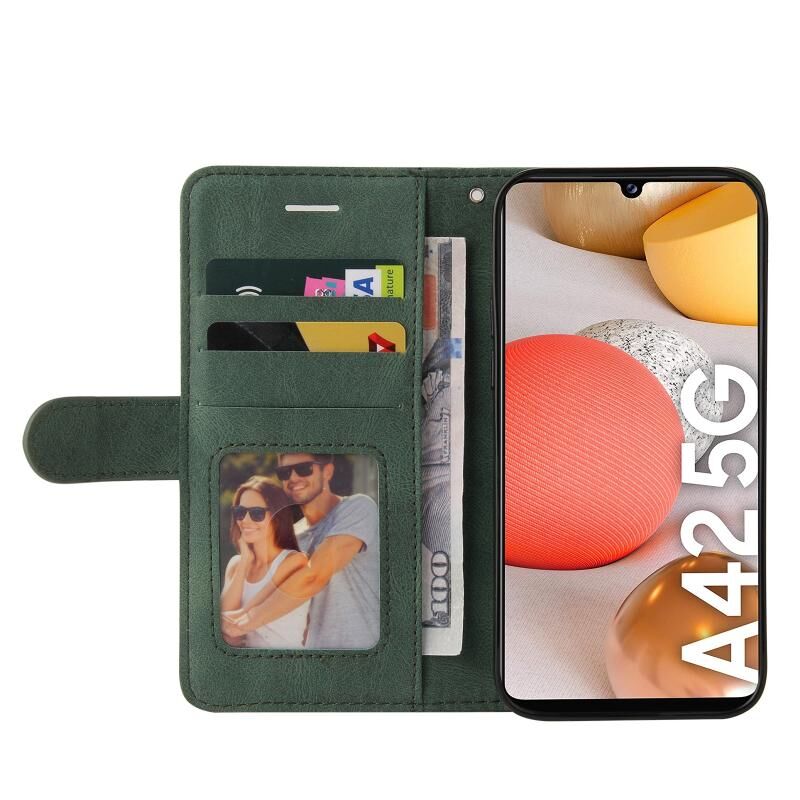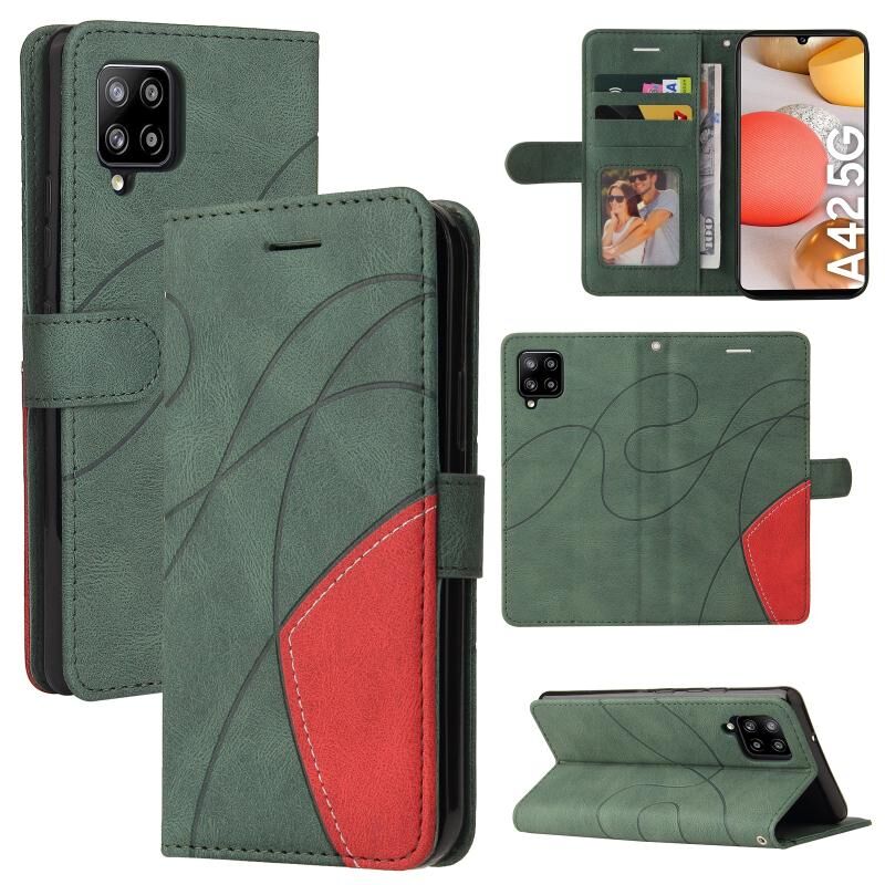 Για Samsung Galaxy A42 5G Διπλό χρώμα Splicing οριζόντια Flip PU δέρμα υπόθεση με θήκη & υποδοχές για κάρτες & πορτοφόλι (πράσινο)