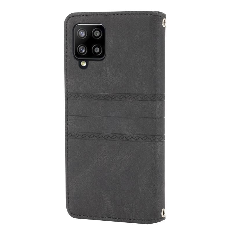 Για Samsung Galaxy A42 5G ανάγλυφη ριγέ μαγνητική πόρπη PU + TPU οριζόντια Flip δερμάτινη θήκη με θήκη & υποδοχή κάρτας & πορτοφόλι & κορνίζα φωτογραφιών & σφεντόνα (Μαύρο)