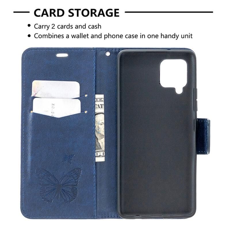 Θήκη Samsung Galaxy A42 5G με ανάγλυφο σχέδιο δύο πεταλούδων, οριζόντια, από δερματίνη PU με βάση στήριξης, θήκη για κάρτες, πορτοφόλι & λουρί (Πράσινο)