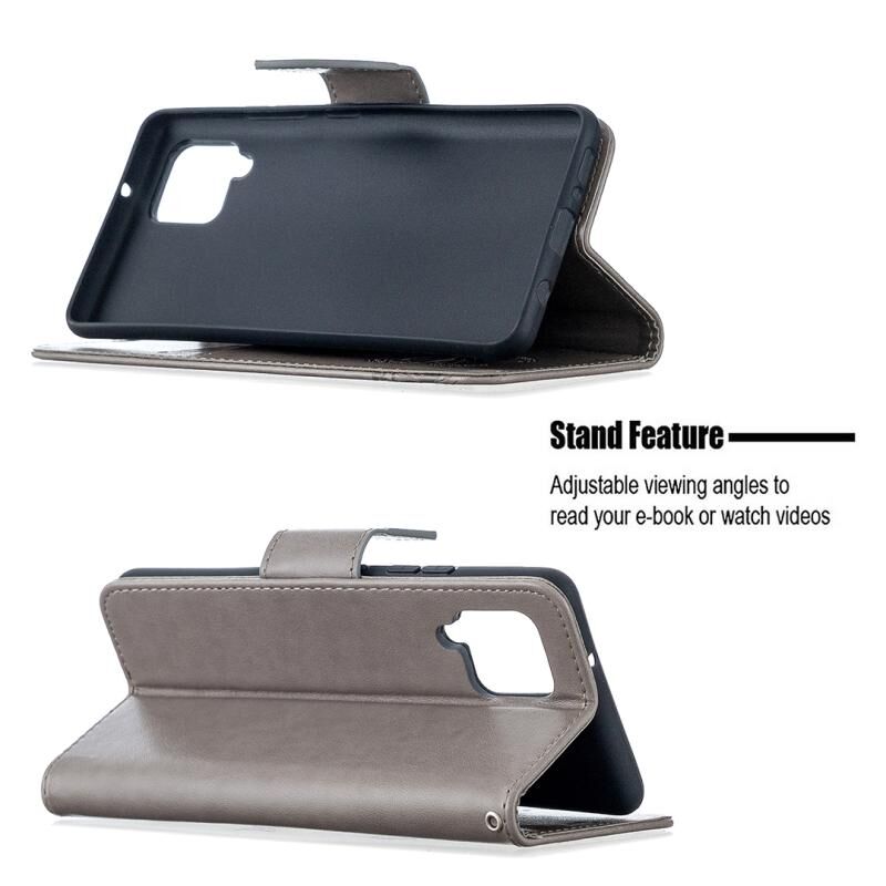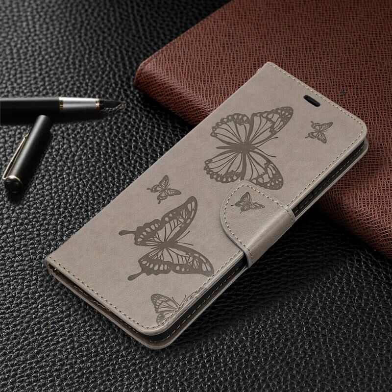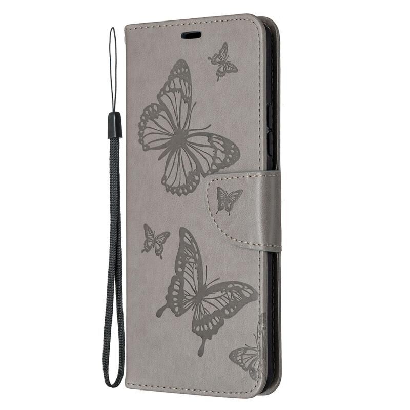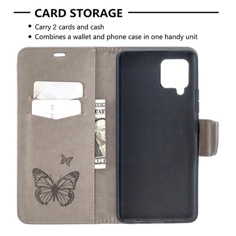 Θήκη Samsung Galaxy A42 5G με ανάγλυφο σχέδιο δύο πεταλούδων, οριζόντια, από δερματίνη PU με βάση στήριξης, θήκη για κάρτες, πορτοφόλι & λουρί (Πράσινο)