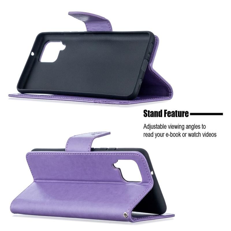 Θήκη Samsung Galaxy A42 5G με ανάγλυφο σχέδιο δύο πεταλούδων, οριζόντια, από δερματίνη PU με βάση στήριξης, θήκη για κάρτες, πορτοφόλι & λουρί (Πράσινο)
