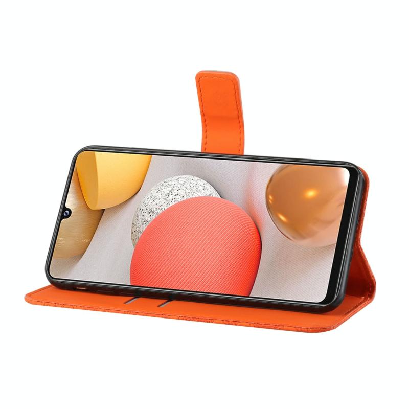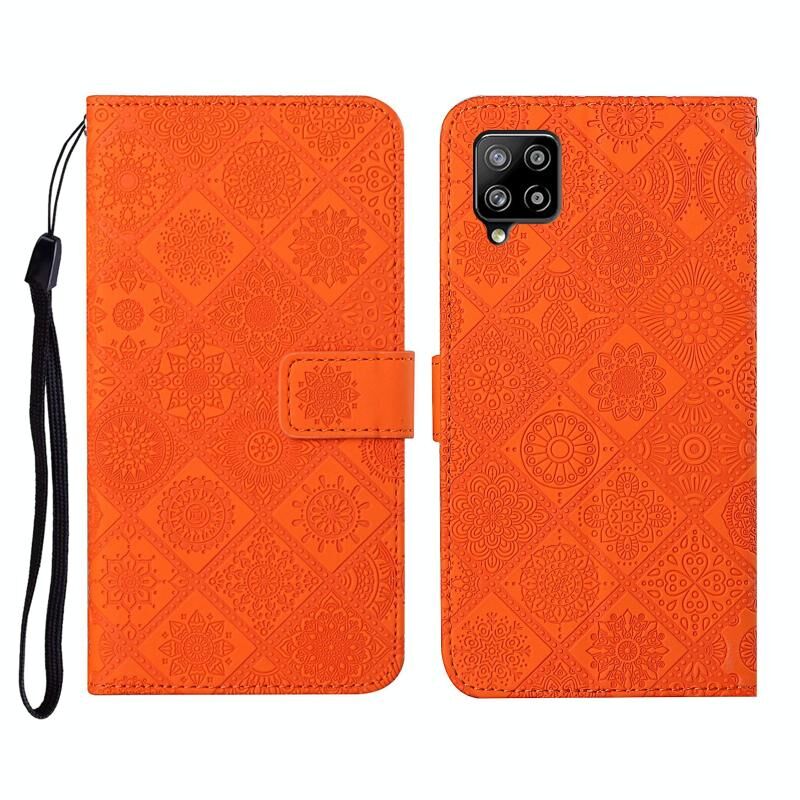 For Samsung Galaxy A42 5G Ethnic Style Embossed Pattern Horizontal Flip Leather Case with Holder & Card Slots & Wallet & Lanyard(Orange)