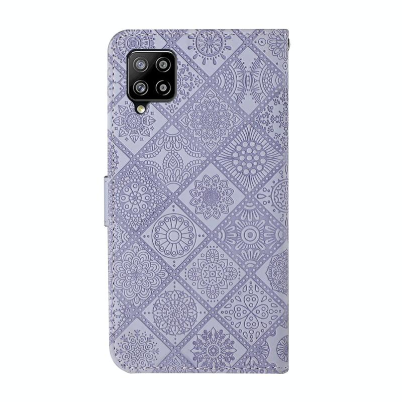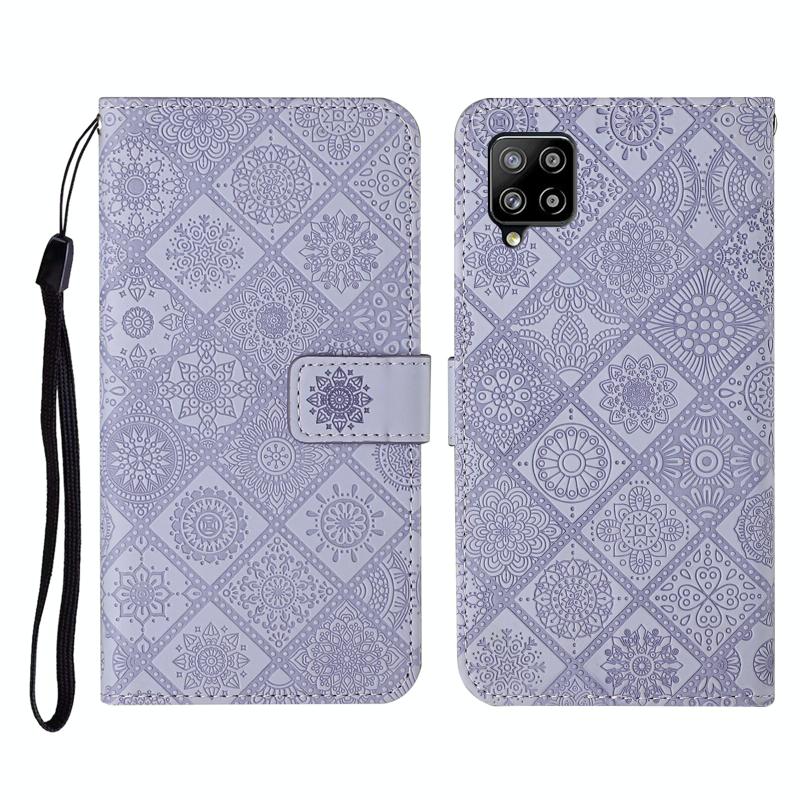 For Samsung Galaxy A42 5G Ethnic Style Embossed Pattern Horizontal Flip Leather Case with Holder & Card Slots & Wallet & Lanyard(Purple)