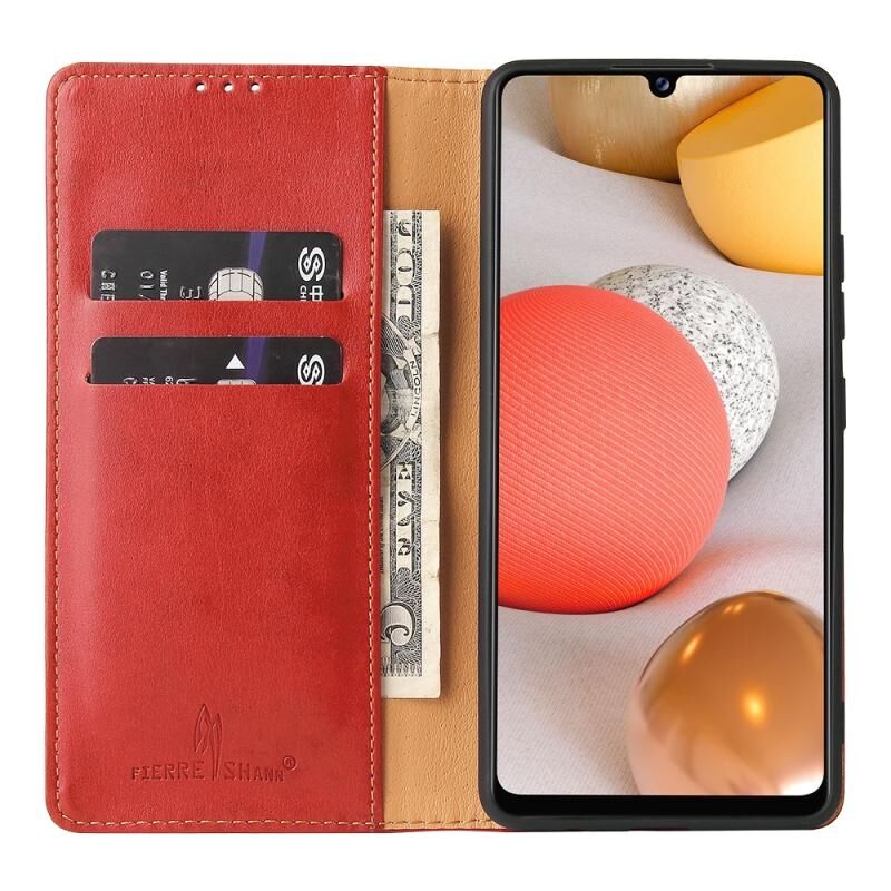 Θήκη βιβρίου οριζόντιας διάταξης από δέρμα PU με υφή για Samsung Galaxy A42 5G Fierre Shann, με βάση & θήκες καρτών & πορτοφόλι (Μαύρο) (FIERRE SHANN)