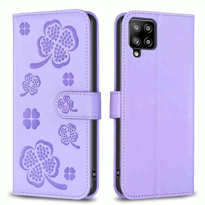 Για Samsung Galaxy A42 5G τετράφυλλο ανάγλυφη δερμάτινη θήκη τηλεφώνου (μωβ)