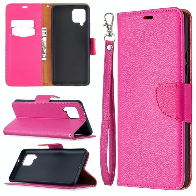 Για Samsung Galaxy A42 5G Litchi υφή καθαρό χρώμα οριζόντια Flip PU δέρμα υπόθεση με θήκη & υποδοχές για κάρτες & πορτοφόλι & κορδόνι (Rose Red)