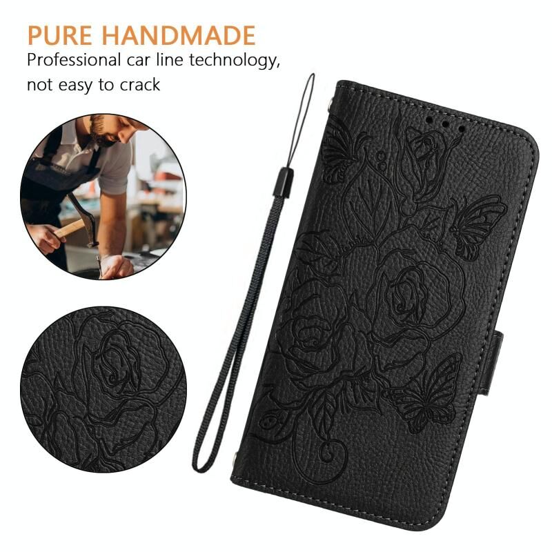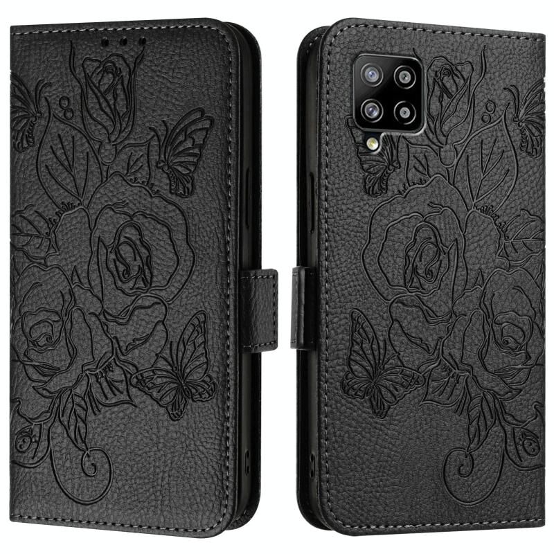 Για Samsung Galaxy A42 5G / M42 ανάγλυφο Rose RFID Anti-theft Δερμάτινη θήκη τηλεφώνου (Μαύρο)