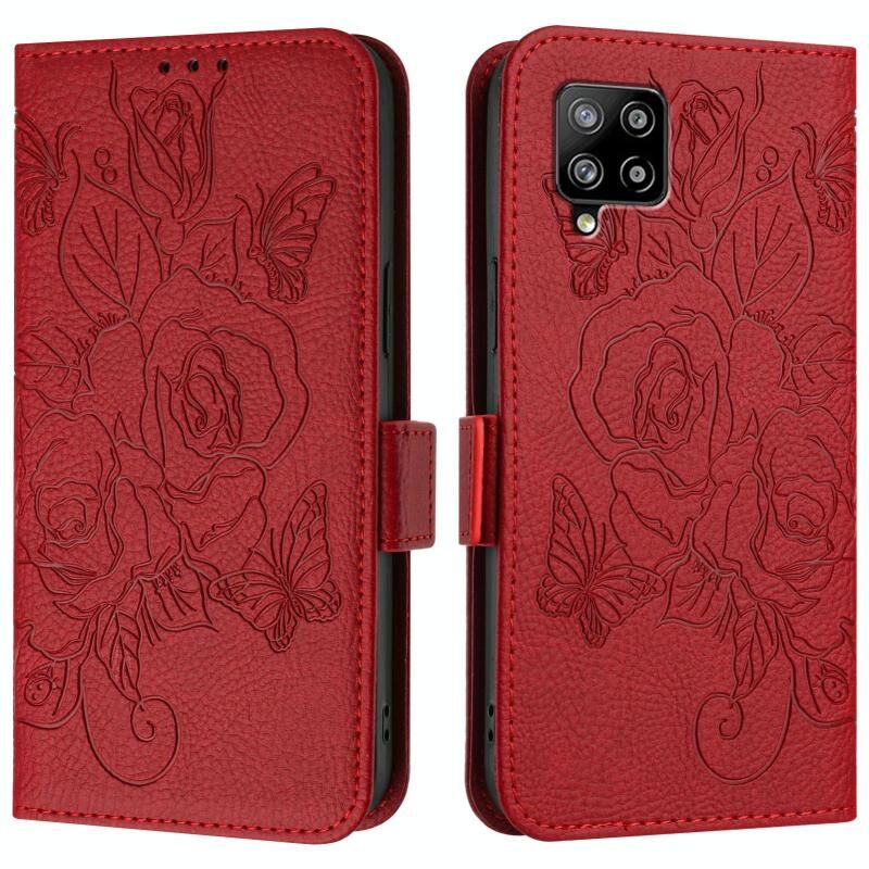 Για Samsung Galaxy A42 5G / M42 ανάγλυφο Rose RFID Anti-theft Δερμάτινη θήκη τηλεφώνου (κόκκινο)