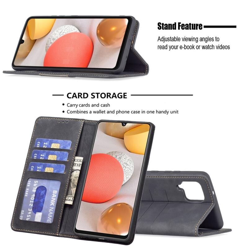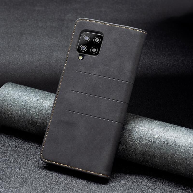 Για Samsung Galaxy A42 5G Μαγνητική θήκη τηλεφώνου με δερμάτινη επένδυση (Μαύρο)