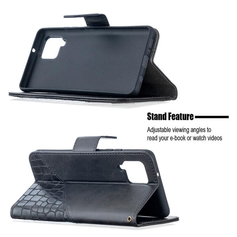 Θήκη Samsung Galaxy A42 5G Οριζόντια Δερμάτινη PU με Υφή Κροκόδειλου, σε Αντίστοιχο Χρώμα, με Πορτοφόλι, Στήριξη & Θήκες Καρτών (Μαύρο)