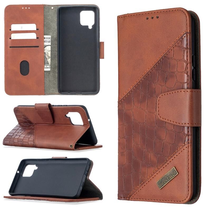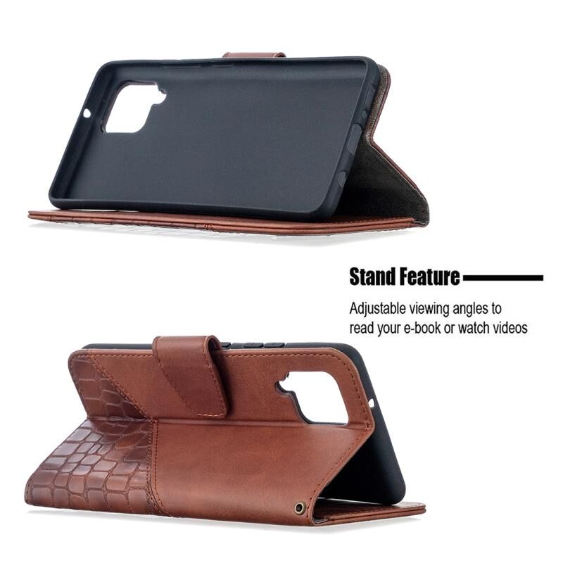 Θήκη Samsung Galaxy A42 5G Οριζόντια Δερμάτινη PU με Υφή Κροκόδειλου, σε Αντίστοιχο Χρώμα, με Πορτοφόλι, Στήριξη & Θήκες Καρτών (Καφέ)