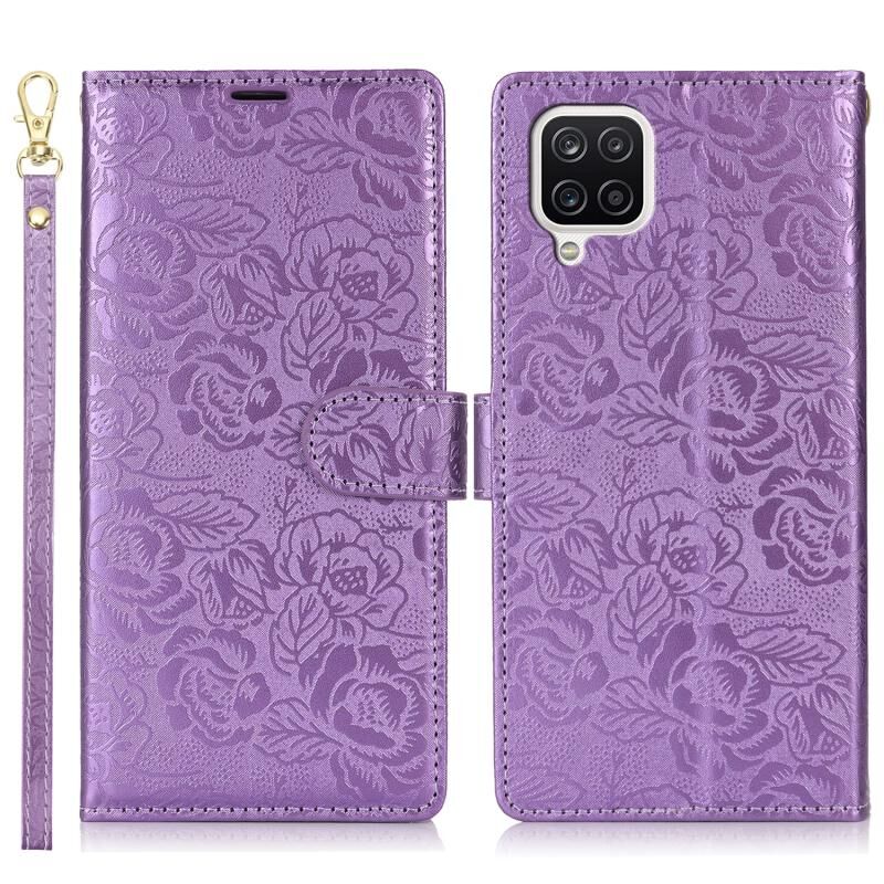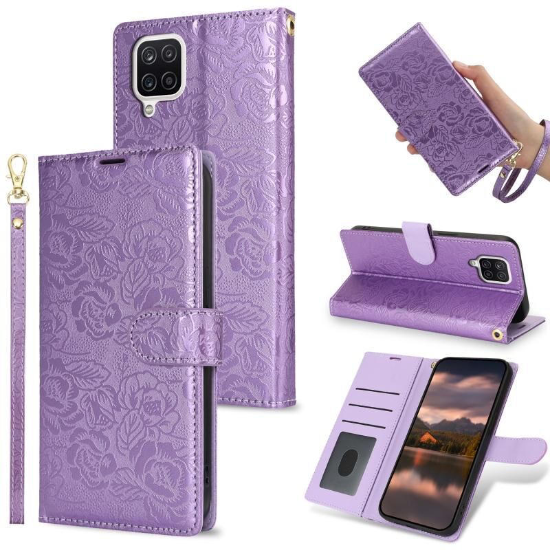 For Samsung Galaxy A42 5G Peony Flowers Imprint Leather Phone Case(Purple)