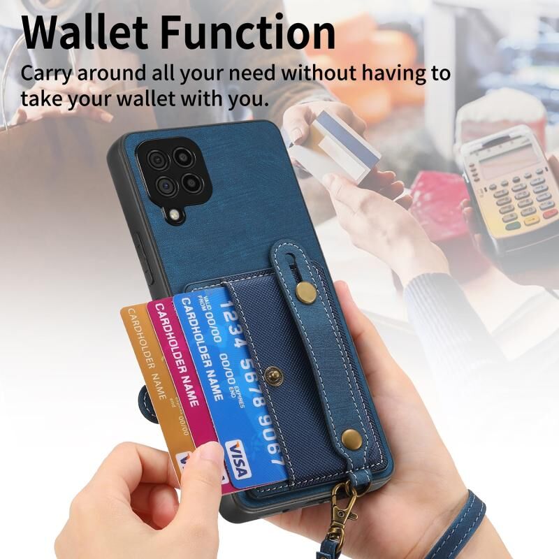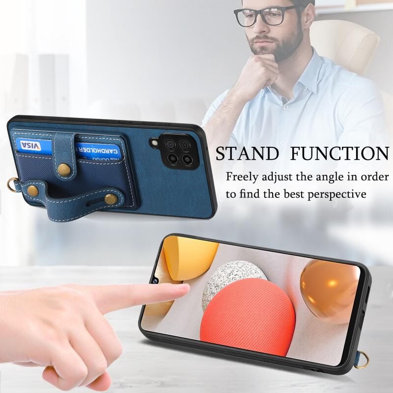 Για Samsung Galaxy A42 5G Ρετρό Σταυρός Wristband πορτοφόλι δέρμα πίσω υπόθεση τηλεφώνου (μπλε)