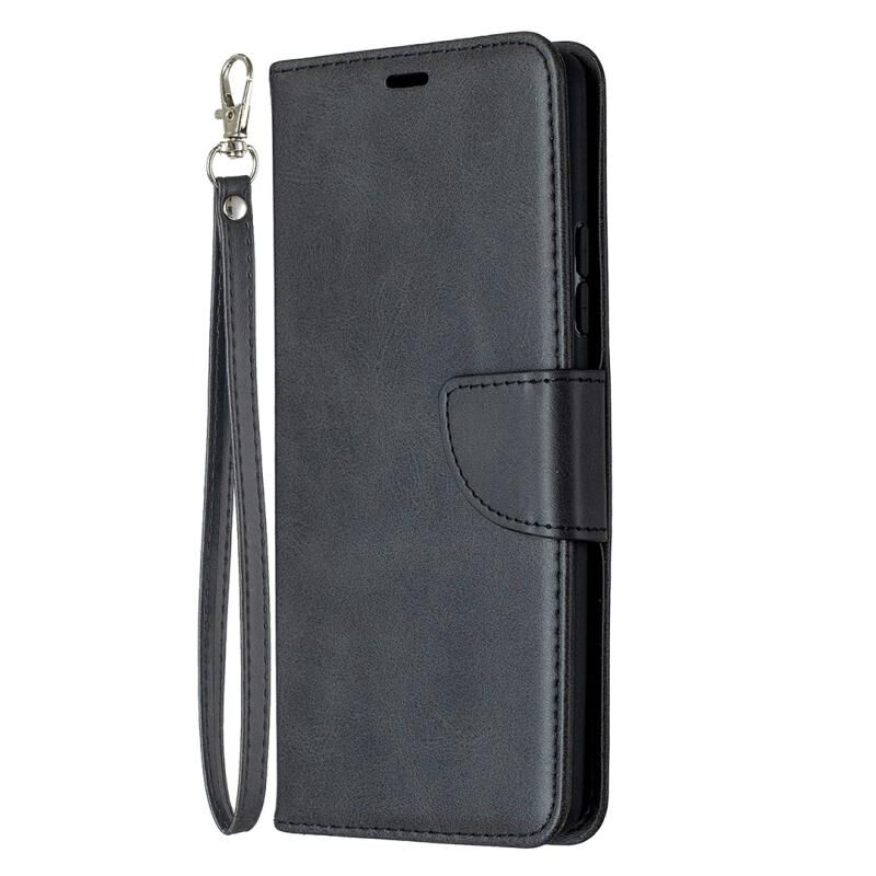 Για Samsung Galaxy A42 5G Retro Lambskin υφή καθαρό χρώμα οριζόντια Flip PU δερμάτινη θήκη με θήκη & υποδοχές για κάρτες & πορτοφόλι & κορδόνι (Μαύρο)