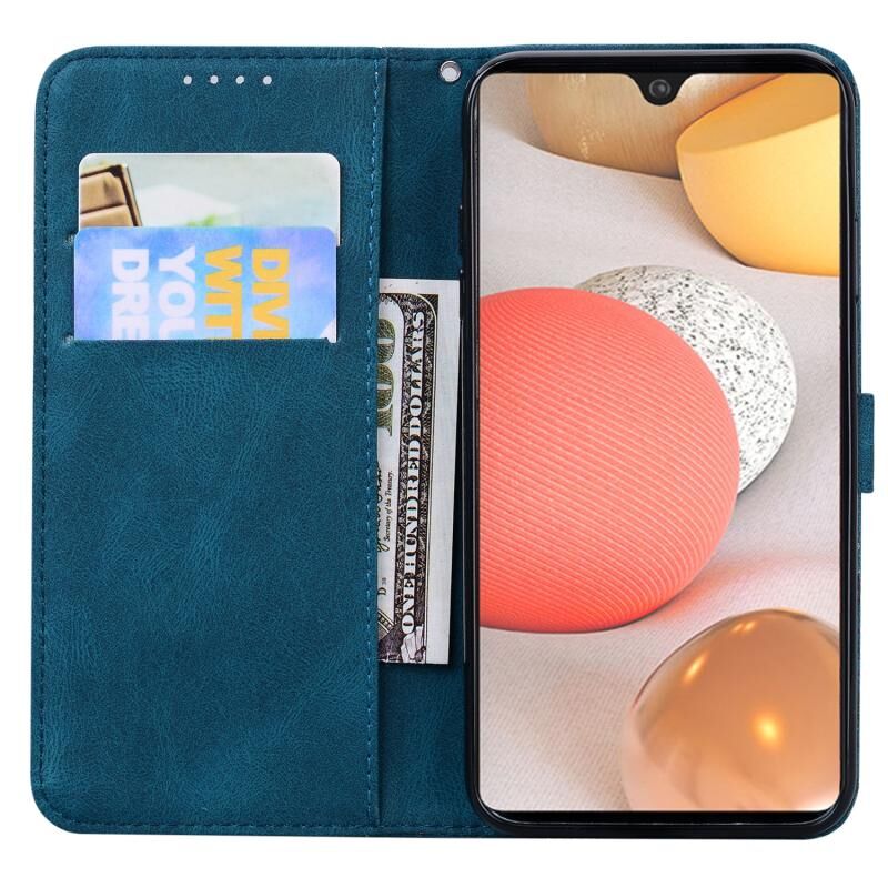 Θήκη Samsung Galaxy A42 5G, Δερμάτινη Flip με υφή retro, ανάγλυφα σχέδια με πεταλούδες, οριζόντια, με βάση στήριξης & θήκες για κάρτες & πορτοφόλι (Καφέ)