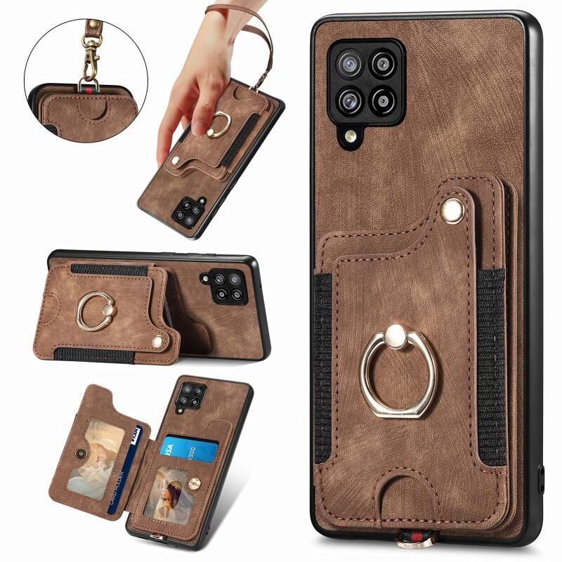 Για Samsung Galaxy A42 5G Ρετρό δέρμα-άισθησης δαχτυλίδι πολυ-κάρτα πορτοφόλι υπόθεση τηλεφώνου (καφέ)
