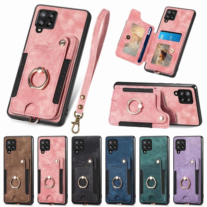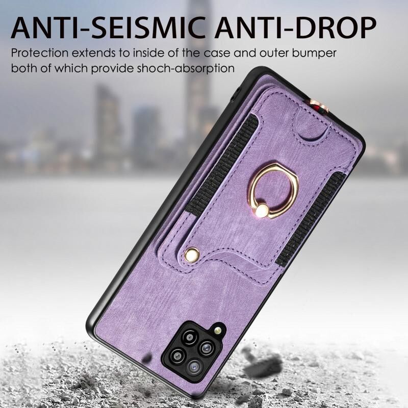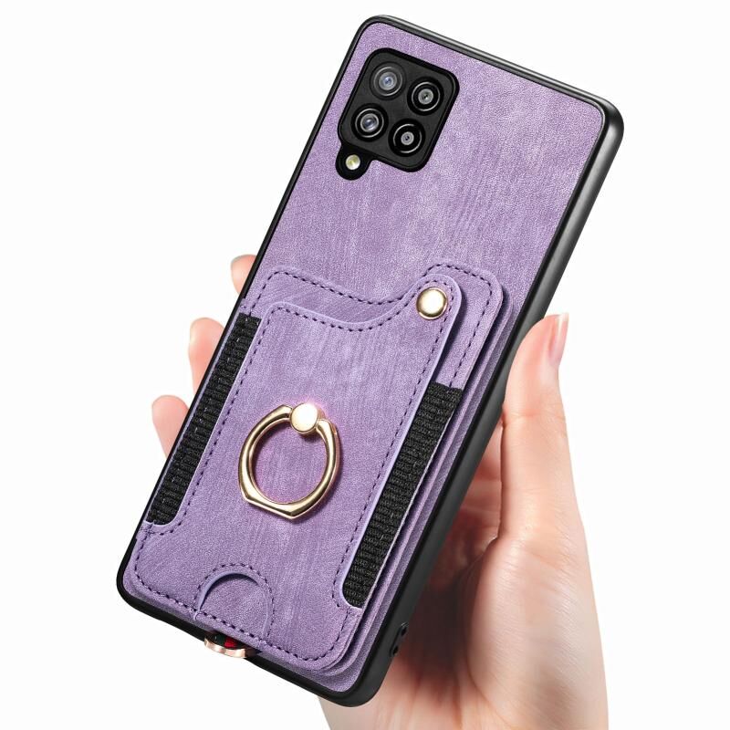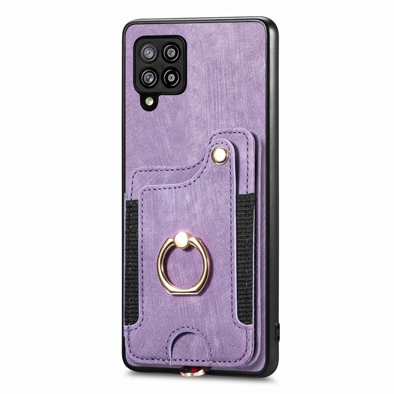 Για το Samsung Galaxy A42 5G Ρετρό δέρμα αίσθηση δαχτυλίδι πολυ-κάρτα πορτοφόλι υπόθεση τηλεφώνου (μωβ)