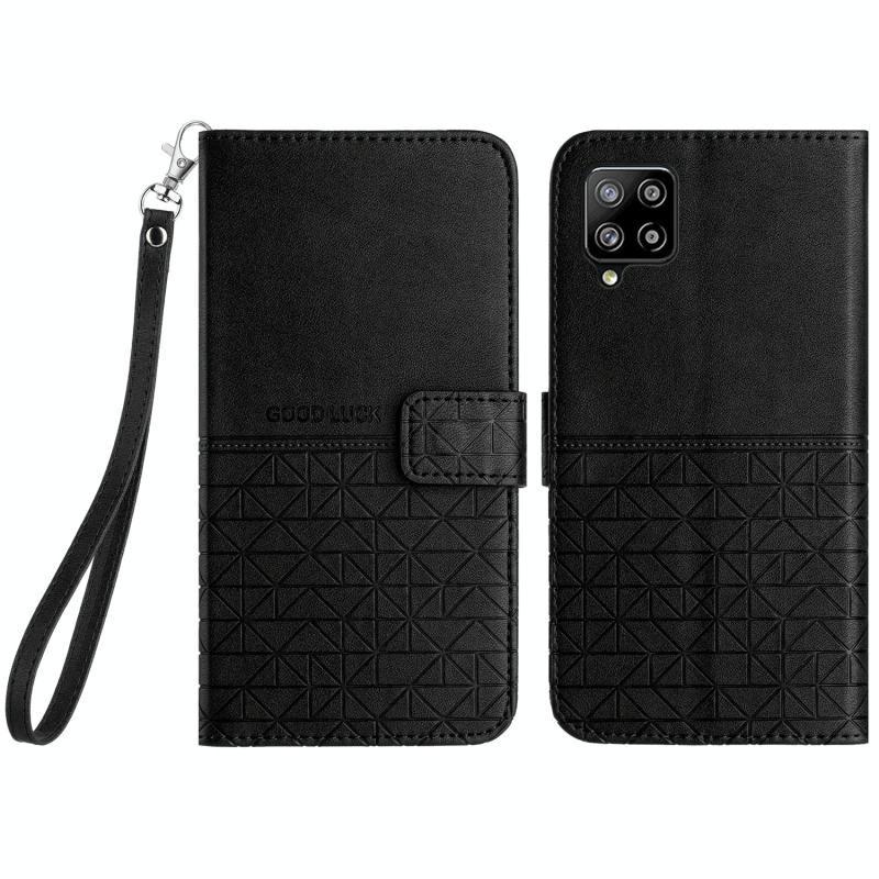 For Samsung Galaxy A42 5G Rhombic Texture Leather Phone Case with Lanyard(Black)