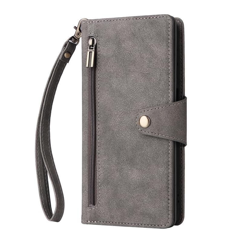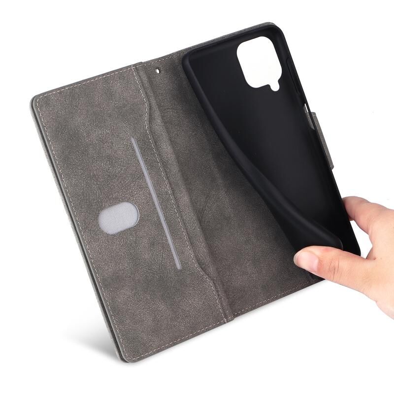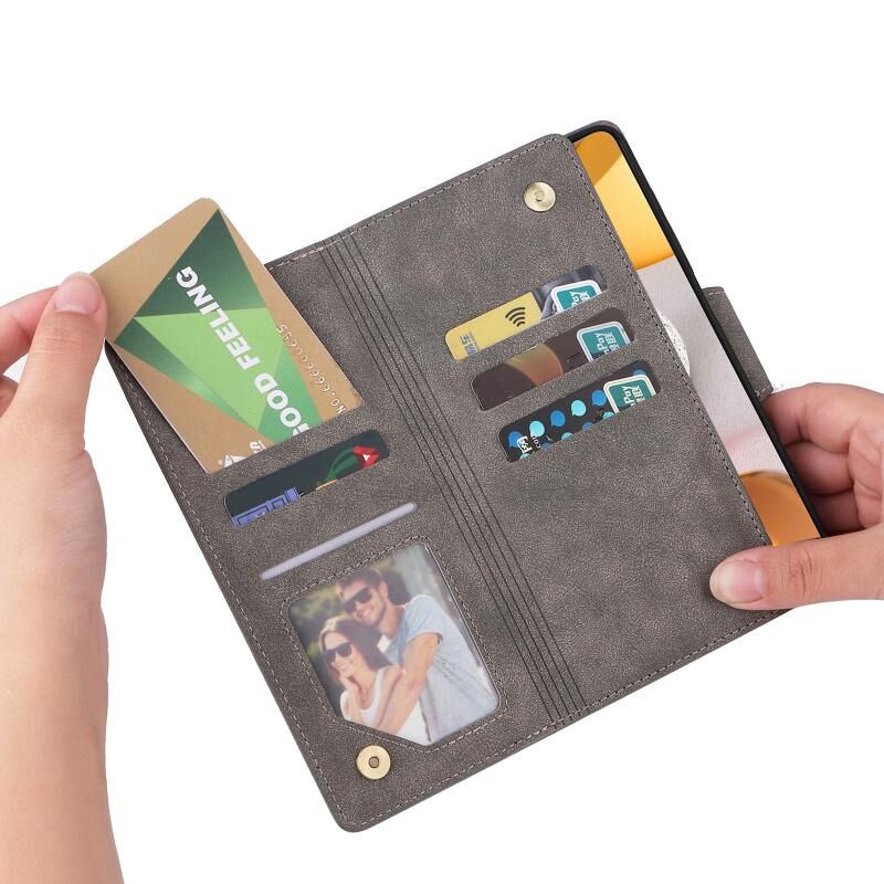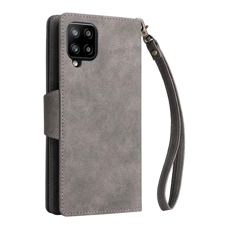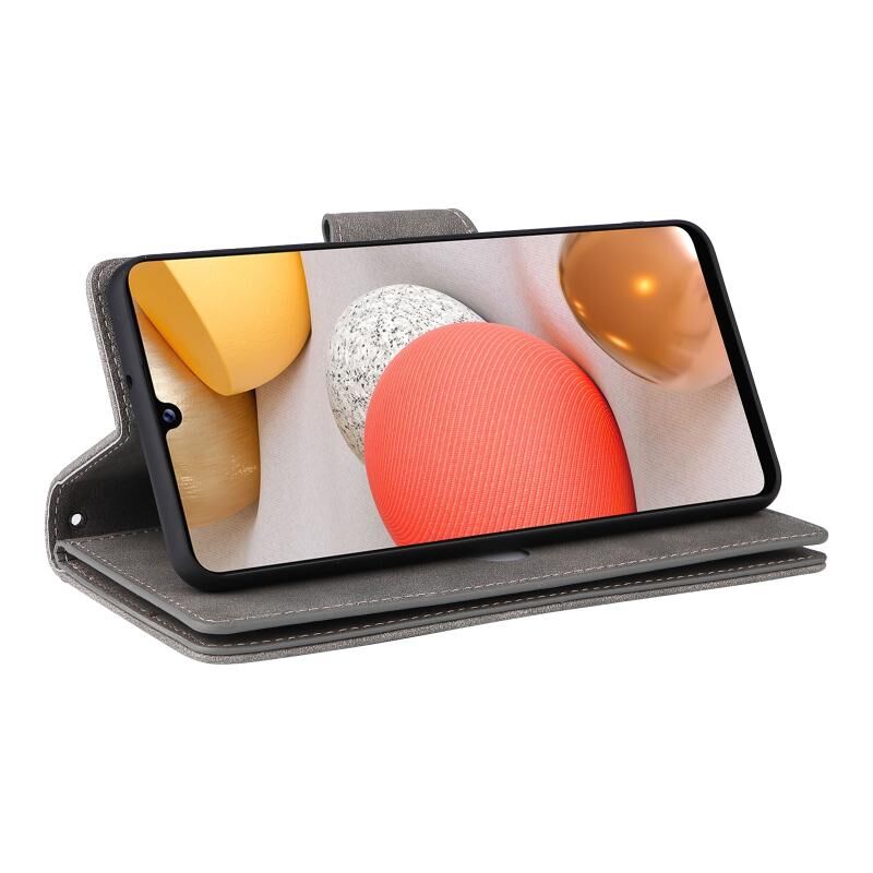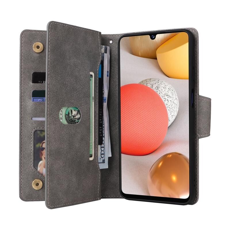 Για Samsung Galaxy A42 5G Rivet πόρπη 9 κάρτες τρεις φορές δερμάτινη θήκη τηλεφώνου (γκρι)