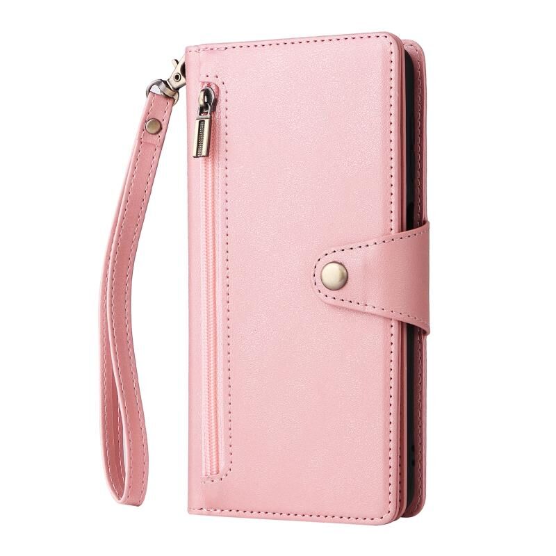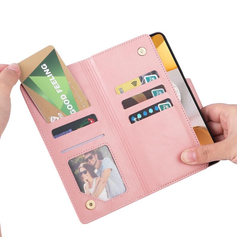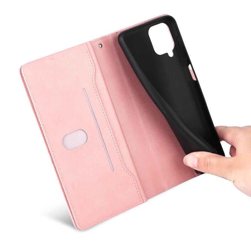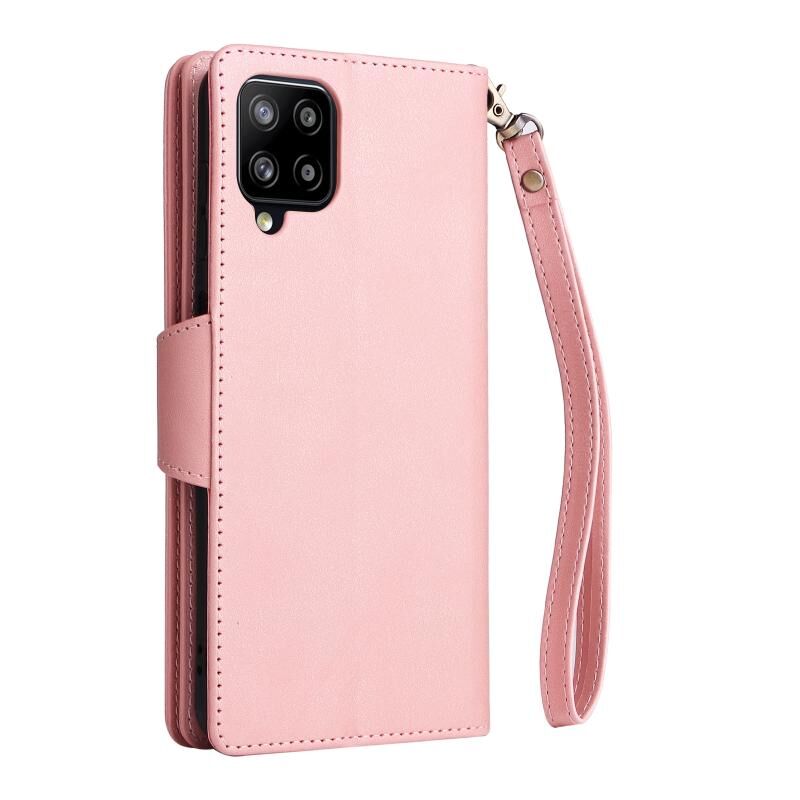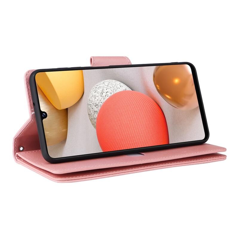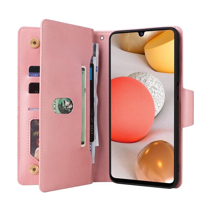 Για Samsung Galaxy A42 5G Rivet πόρπη 9 κάρτες τρεις φορές δερμάτινη θήκη τηλεφώνου (Rose Gold)