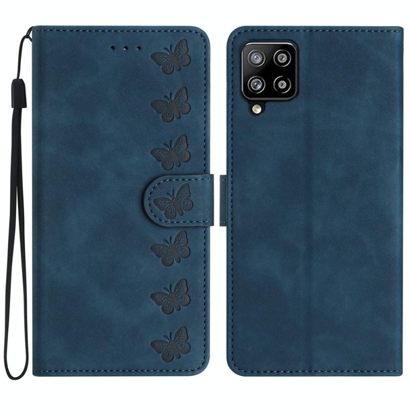 Θήκη τηλεφώνου δερμάτινη ανάγλυφη Seven Butterflies για Samsung Galaxy A42 5G (Μπλε)