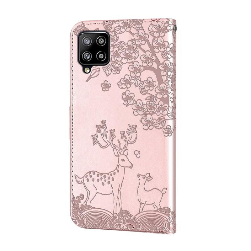 Για Samsung Galaxy A42 5G Sika Deer ανάγλυφο μοτίβο οριζόντια Flip PU δέρμα υπόθεση με θήκη & υποδοχή για κάρτες & πορτοφόλι & πλαίσιο φωτογραφιών (Rose Gold)