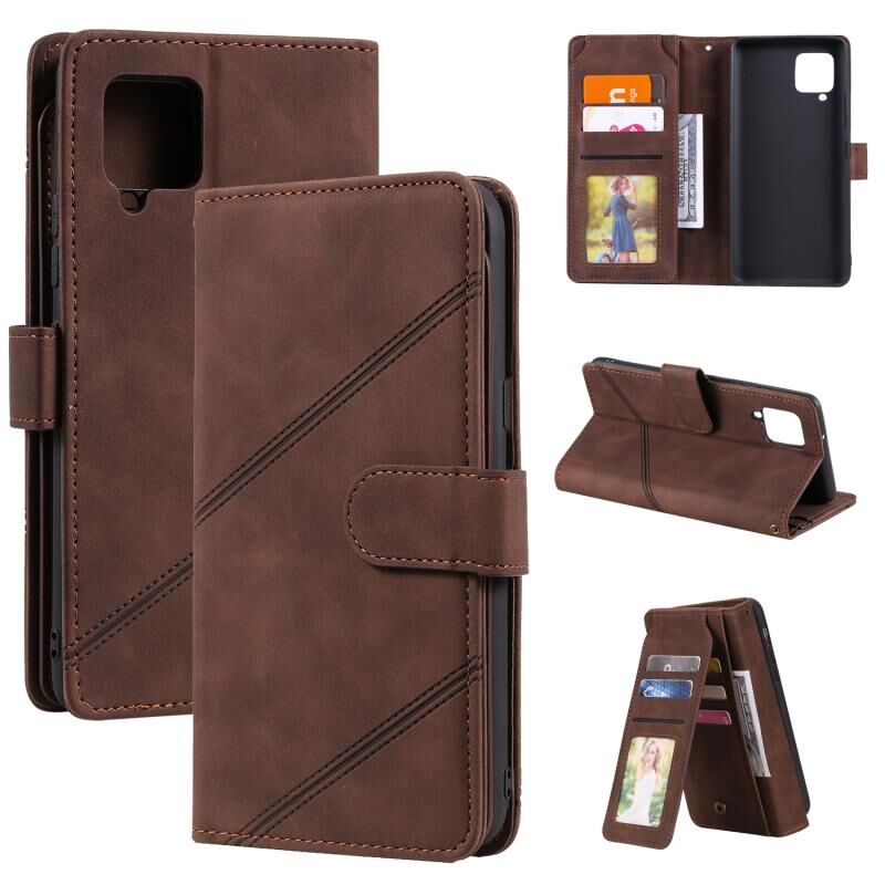 Για Samsung Galaxy A42 5G Skin Feel Business Οριζόντια Flip PU δέρμα υπόθεση με θήκη & υποδοχές πολλαπλών καρτών & πορτοφόλι & κορδόνι & κορνίζα & πλαίσιο φωτογραφιών (καφέ)