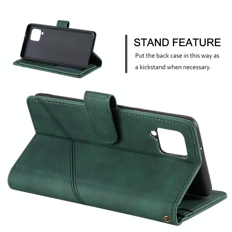 Για Samsung Galaxy A42 5G Skin Feel Business Οριζόντια Flip PU δέρμα υπόθεση με θήκη & υποδοχές πολλαπλών καρτών & πορτοφόλι & κορδόνι & κορνίζα & πλαίσιο φωτογραφιών (πράσινο)