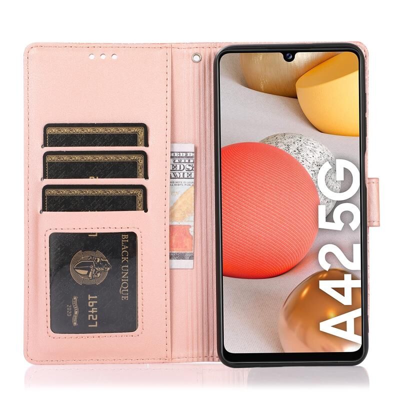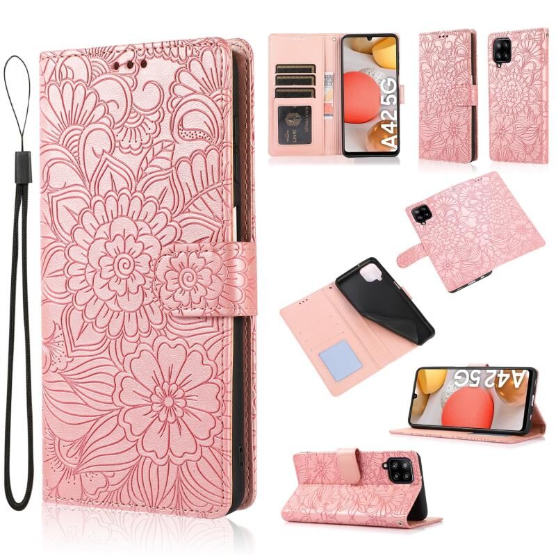 Για Samsung Galaxy A42 5G δέρμα αίσθηση ανάγλυφο ηλιοτρόπιο οριζόντια Flip δερμάτινη θήκη με κάτοχο & υποδοχές για κάρτες & πορτοφόλι & Lanyard (Rose Gold)
