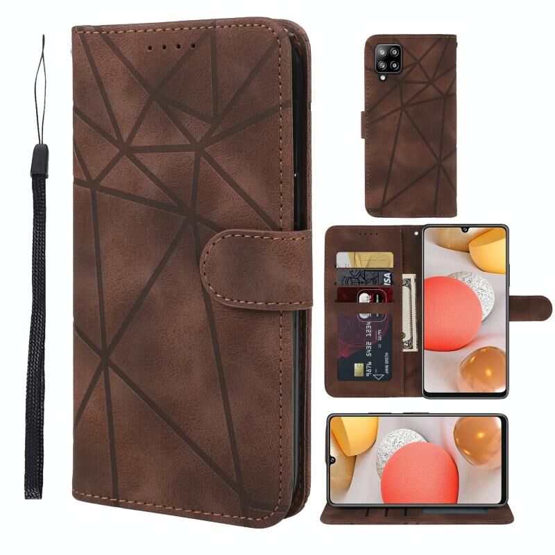 Θήκη τηλεφώνου Samsung Galaxy A42 5G με δερμάτινη υφή, γεωμετρικά σχέδια (Καφέ)
