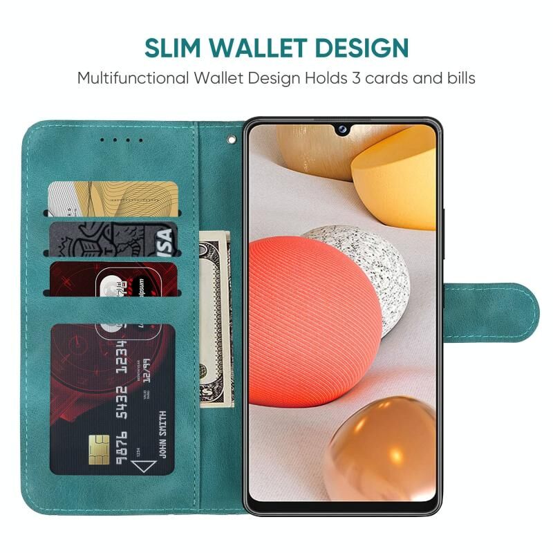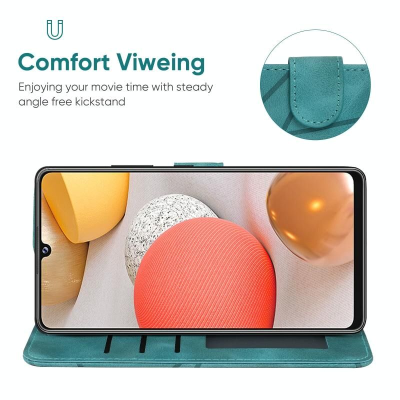 Θήκη τηλεφώνου Samsung Galaxy A42 5G με δερμάτινη υφή, γεωμετρικά σχέδια (πράσινο)
