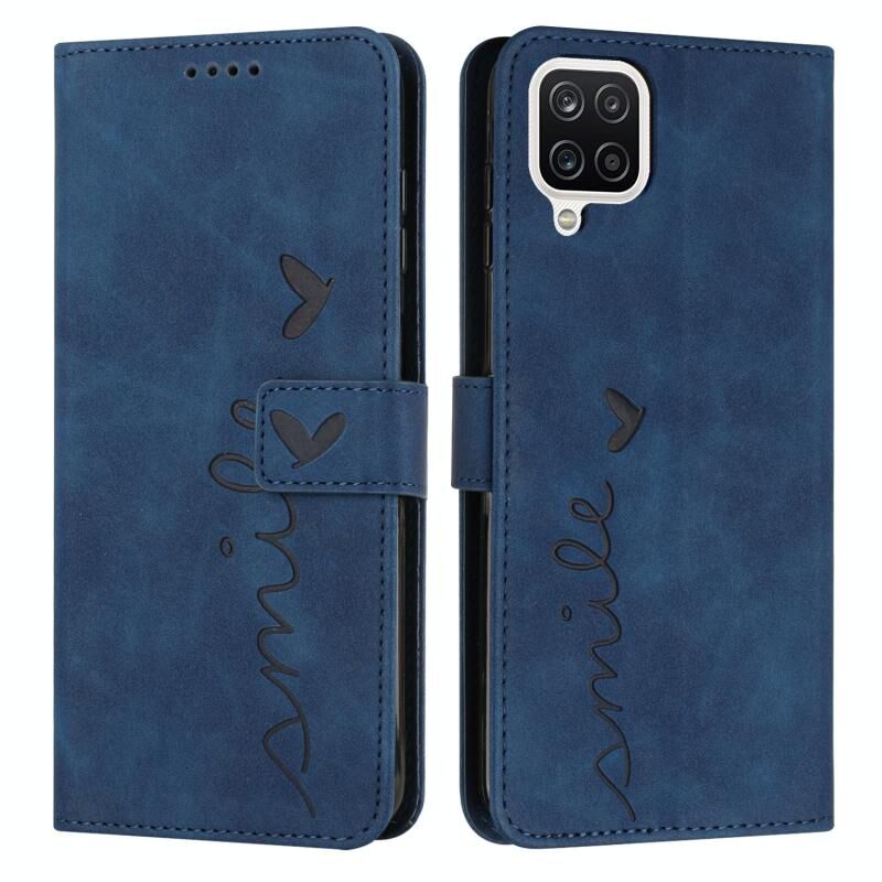 Για Samsung Galaxy A42 5G δέρμα αίσθηση καρδιά μοτίβο δερμάτινη θήκη τηλεφώνου (Μπλε)