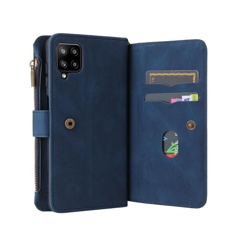 Για το Samsung Galaxy A42 5G Skin Feel PU + TPU Οριζόντια Flip δερμάτινη θήκη με θήκη για 15 κάρτες & υποδοχή & πορτοφόλι & τσέπη με φερμουάρ & κορδόνι (μπλε)