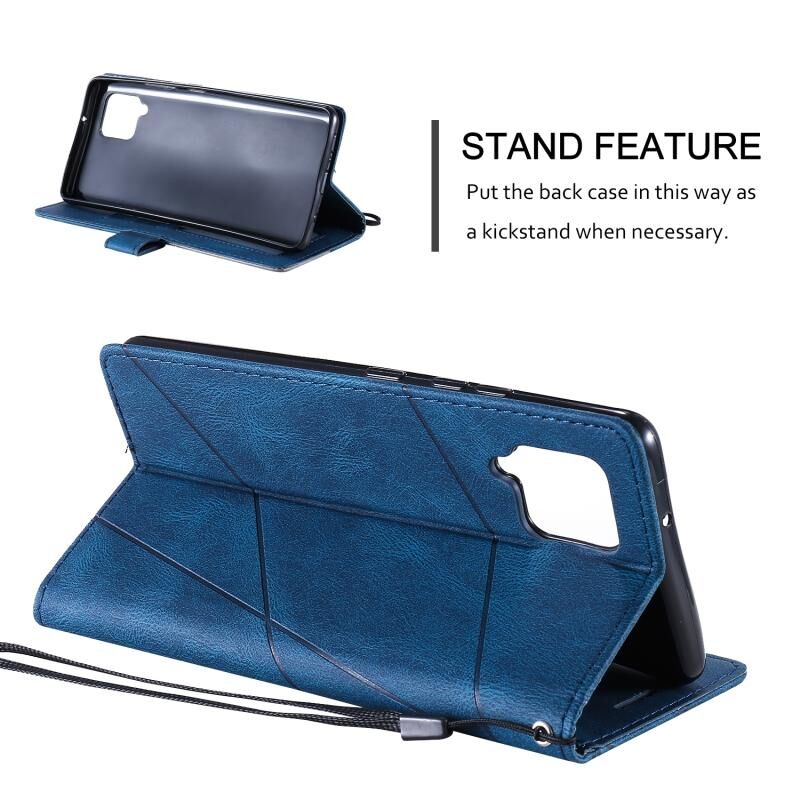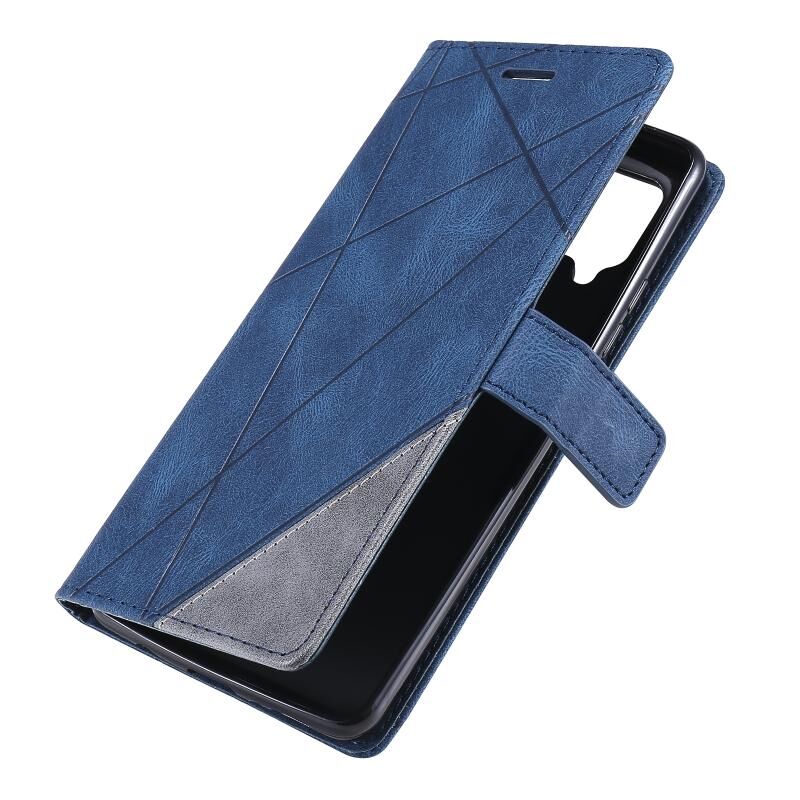 Για Samsung Galaxy A42 5G δέρμα αίσθηση Splicing οριζόντια Flip δερμάτινη θήκη με υποδοχή & υποδοχές για κάρτες & πορτοφόλι & κορνίζα φωτογραφιών (μπλε)