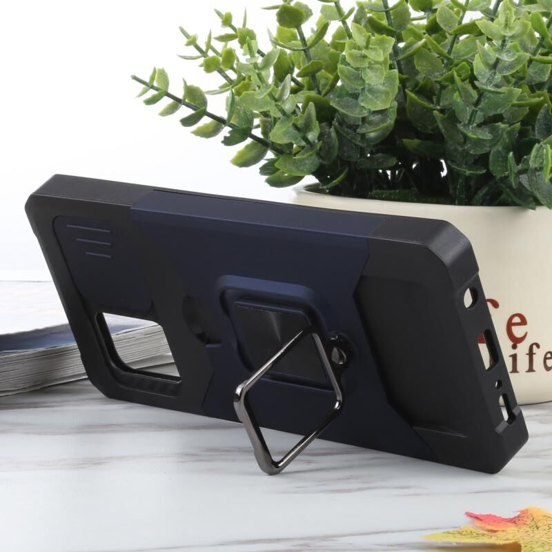 Για Samsung Galaxy A42 5G Συρόμενη κάμερα κάλυψης Design PC + TPU Αδιάβροχη θήκη με θήκη δαχτυλιδιού & υποδοχή κάρτας (Μπλε)