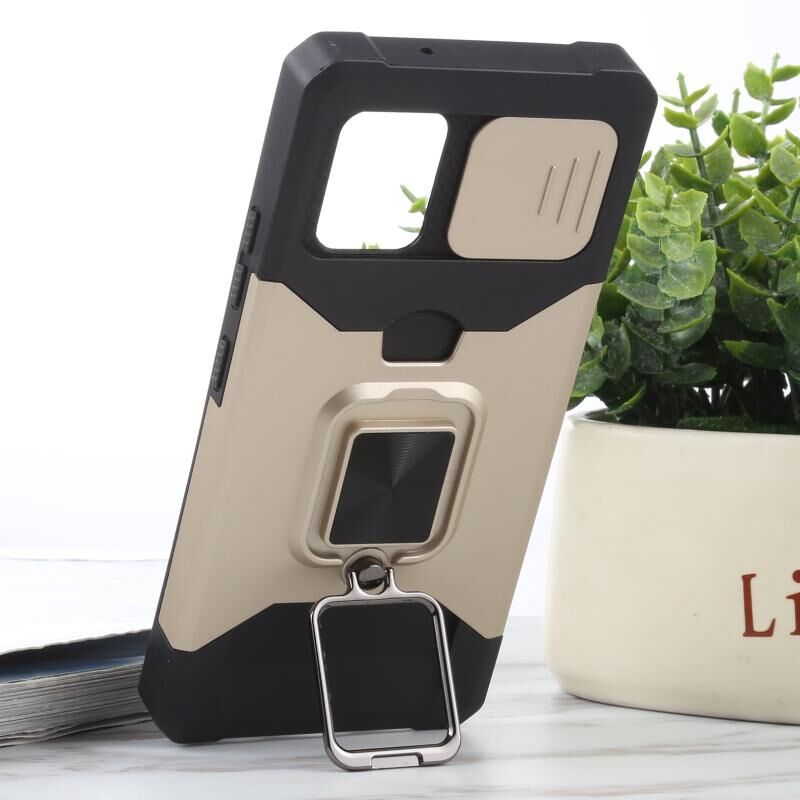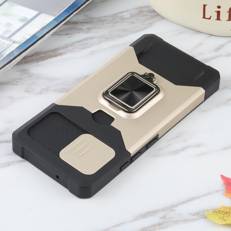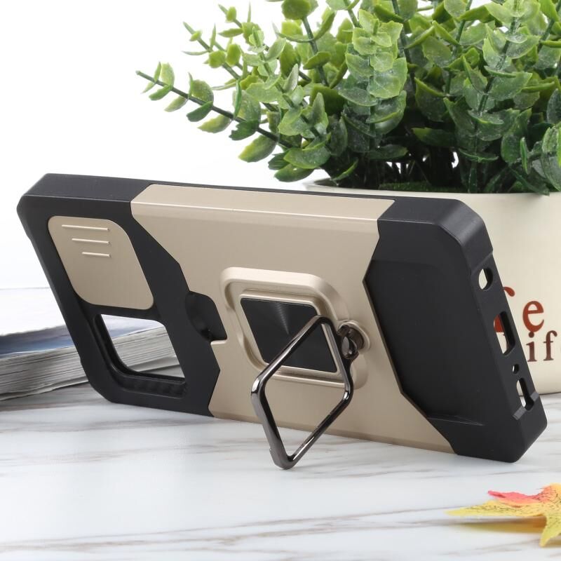 Για Samsung Galaxy A42 5G συρόμενη κάμερα κάλυμμα Σχεδιασμός PC + TPU Shockproof υπόθεση με δαχτυλίδι κάτοχος & υποδοχή κάρτας (Χρυσός)