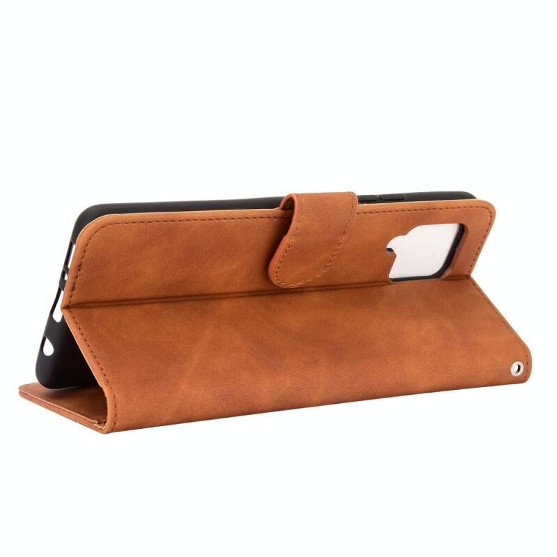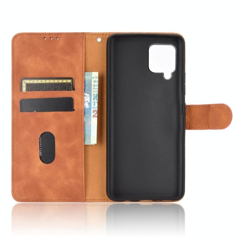 Για Samsung Galaxy A42 5G Solid Color Skin Feel μαγνητική πόρπη οριζόντια Flip μοσχάρι υφή PU δέρμα υπόθεση με κάτοχο & υποδοχές για κάρτες & πορτοφόλι (καφέ)