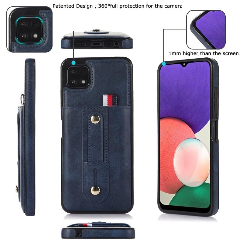 Για Samsung Galaxy A42 5G Wristband Kickstand πορτοφόλι δερμάτινη θήκη τηλεφώνου (Μπλε)