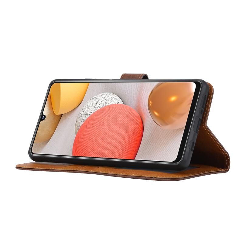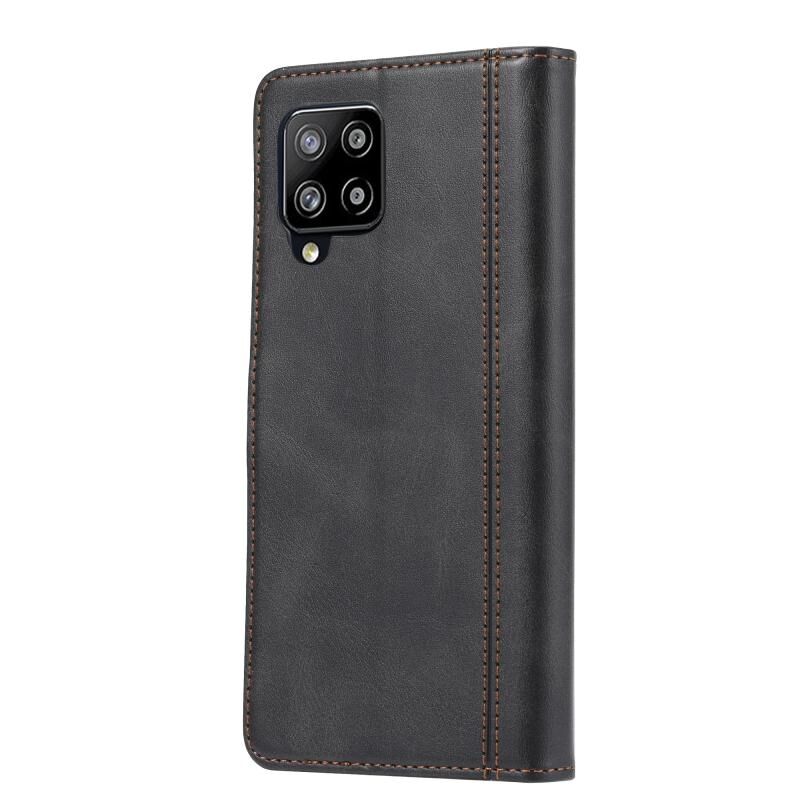 Για Samsung Galaxy A42 Calf Texture Double Fold Κούμπωμα οριζόντια Flip δερμάτινη θήκη με κορνίζα & κάτοχος φωτογραφιών & υποδοχές για κάρτες & πορτοφόλι (Μαύρο)