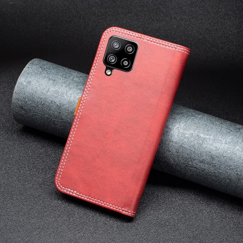 Θήκη τηλεφώνου Samsung Galaxy A42 από δέρμα με διπλή ραφή και αντιστοίχιση χρώματος (Μαύρο)