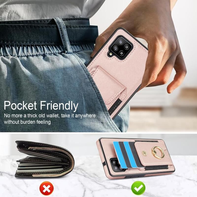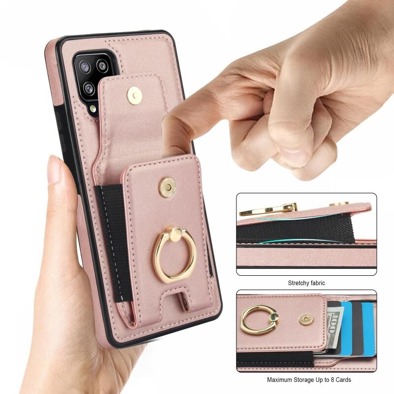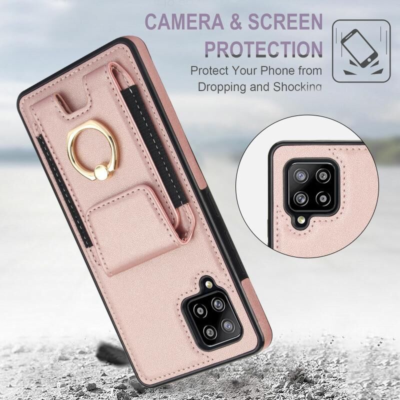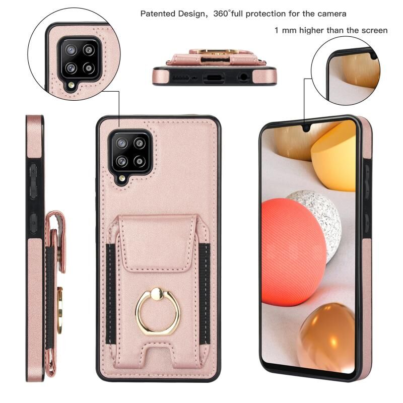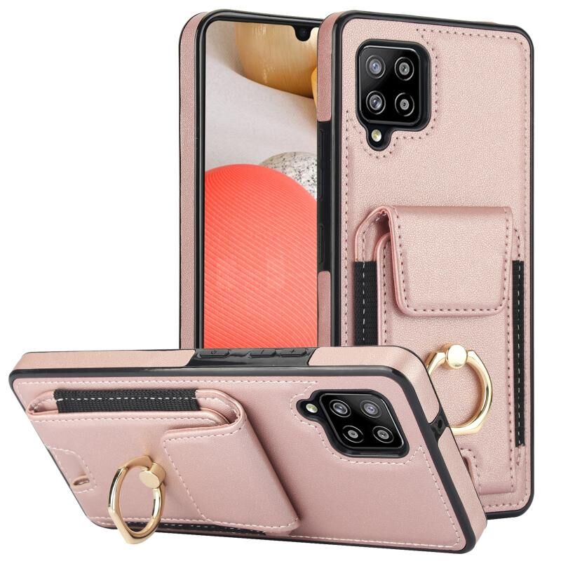 Για Samsung Galaxy A42 Ελαστική κάρτα τσάντα δαχτυλίδι τσάντα κάτοχος υπόθεση τηλεφώνου (Rose Gold)