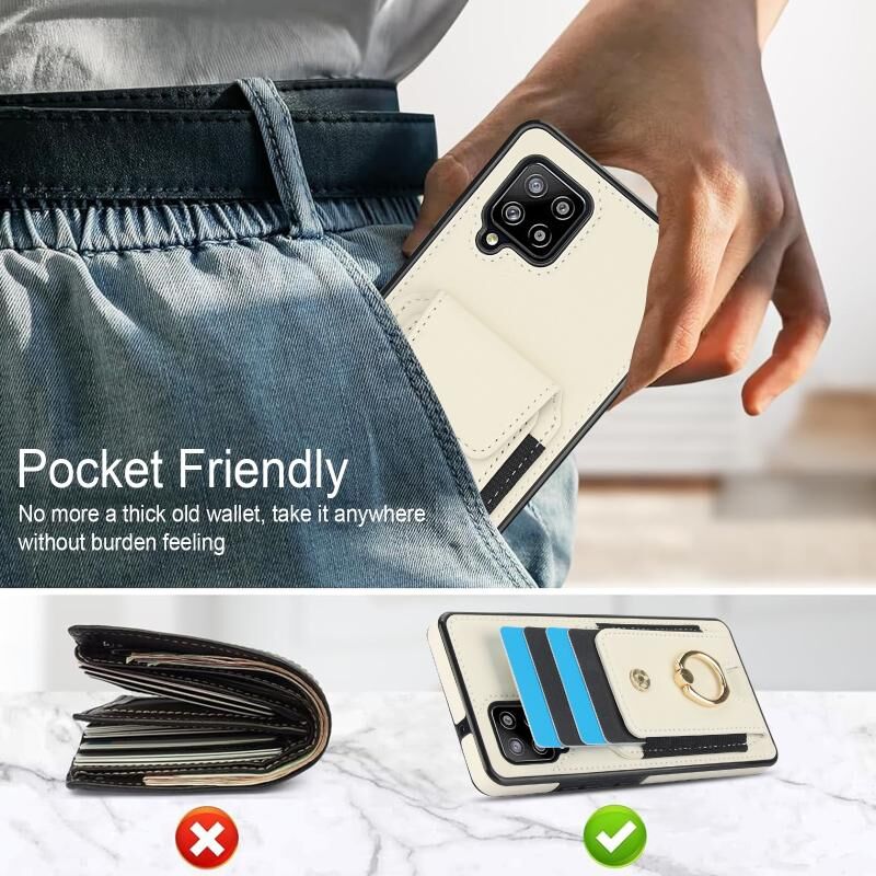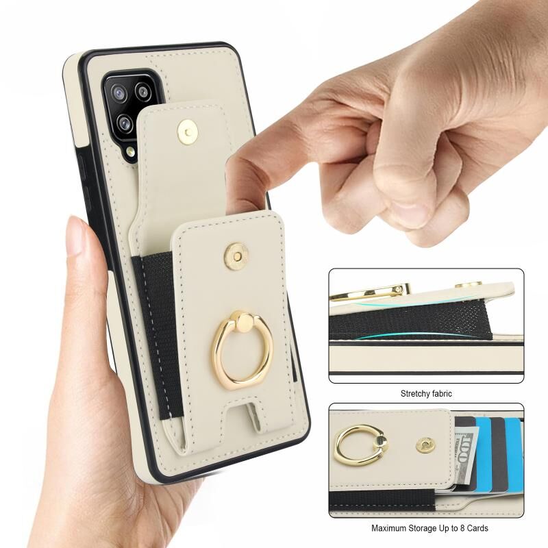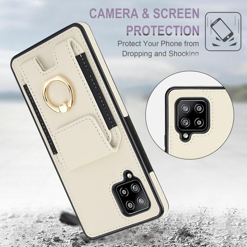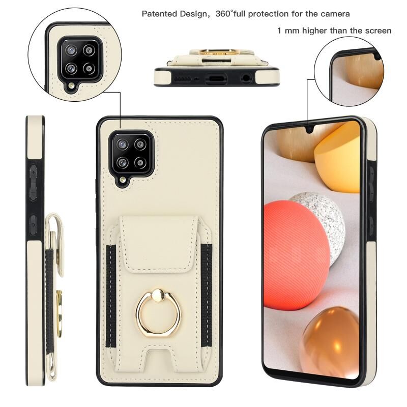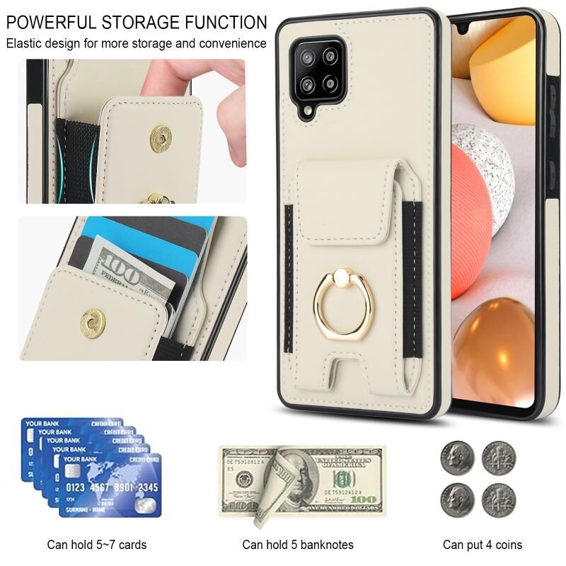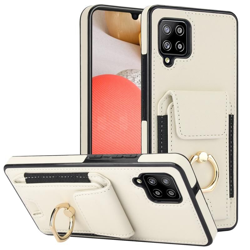 Για Samsung Galaxy A42 Ελαστική κάρτα τσάντα δαχτυλίδι τσάντα κάτοχος υπόθεση τηλεφώνου (λευκό)