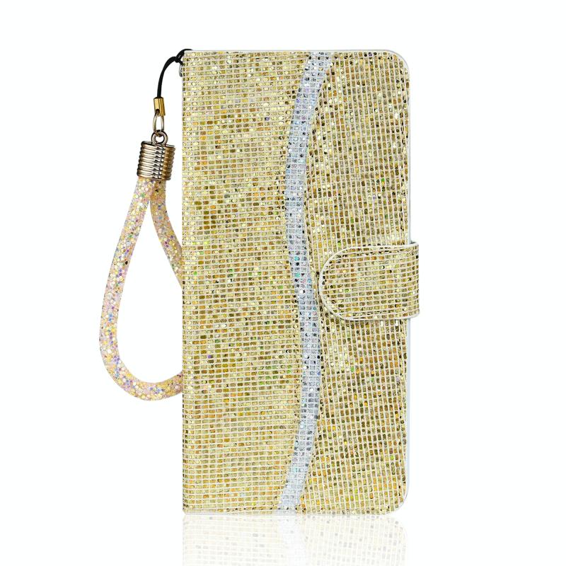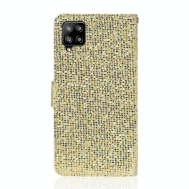 For Samsung Galaxy A42 Glitter Powder Horizontal Flip Leather Case with Card Slots & Holder & Lanyard(Gold)